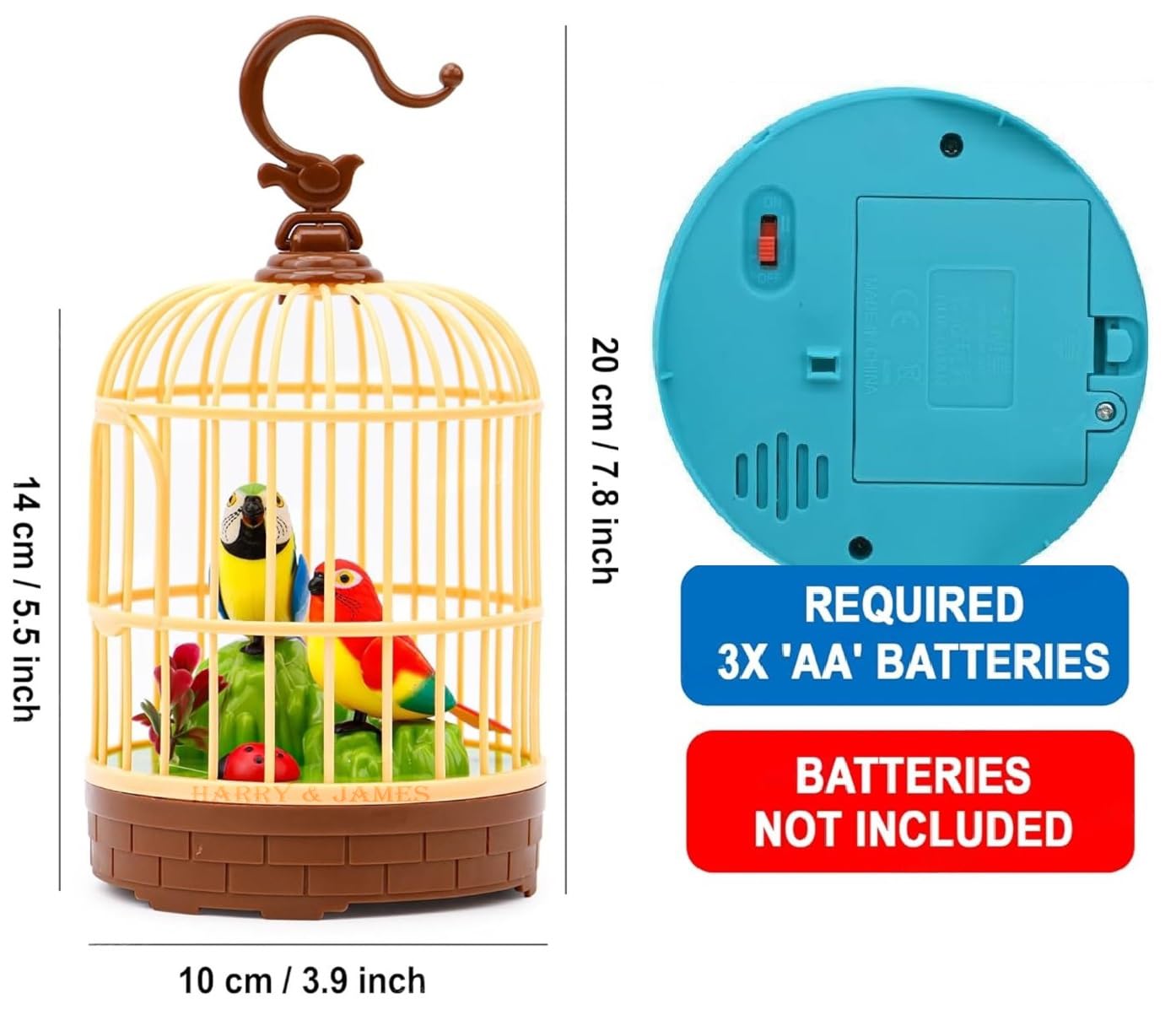 【Talking & Repeating What You Said】This talking birds birdcage toy has a sound sensing microchips. When it hears a sound, it will repeat the voice what you said. While repeating, it begins chirping, fluttering its wings and moving head and tail, just like a real bird.