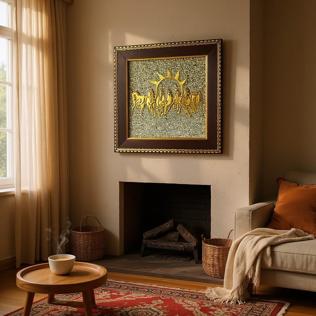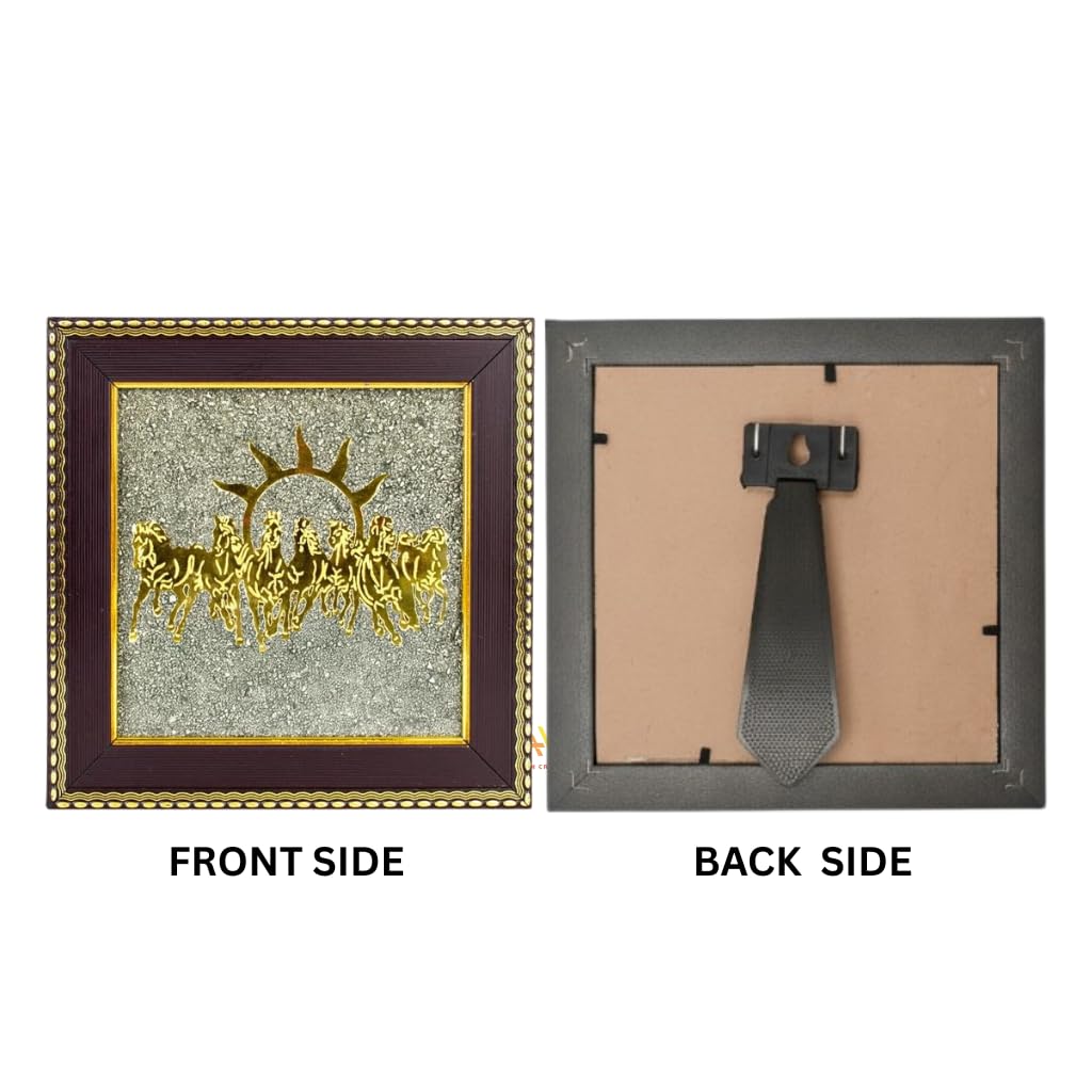 📏 Product Details: Frame Size – 18x18x1 cm | Material – Natural Raw Pyrite Stone & Seven Horses Image | Package Contents – 1 Piece | Brand – AGATE N CRYSTALS.
