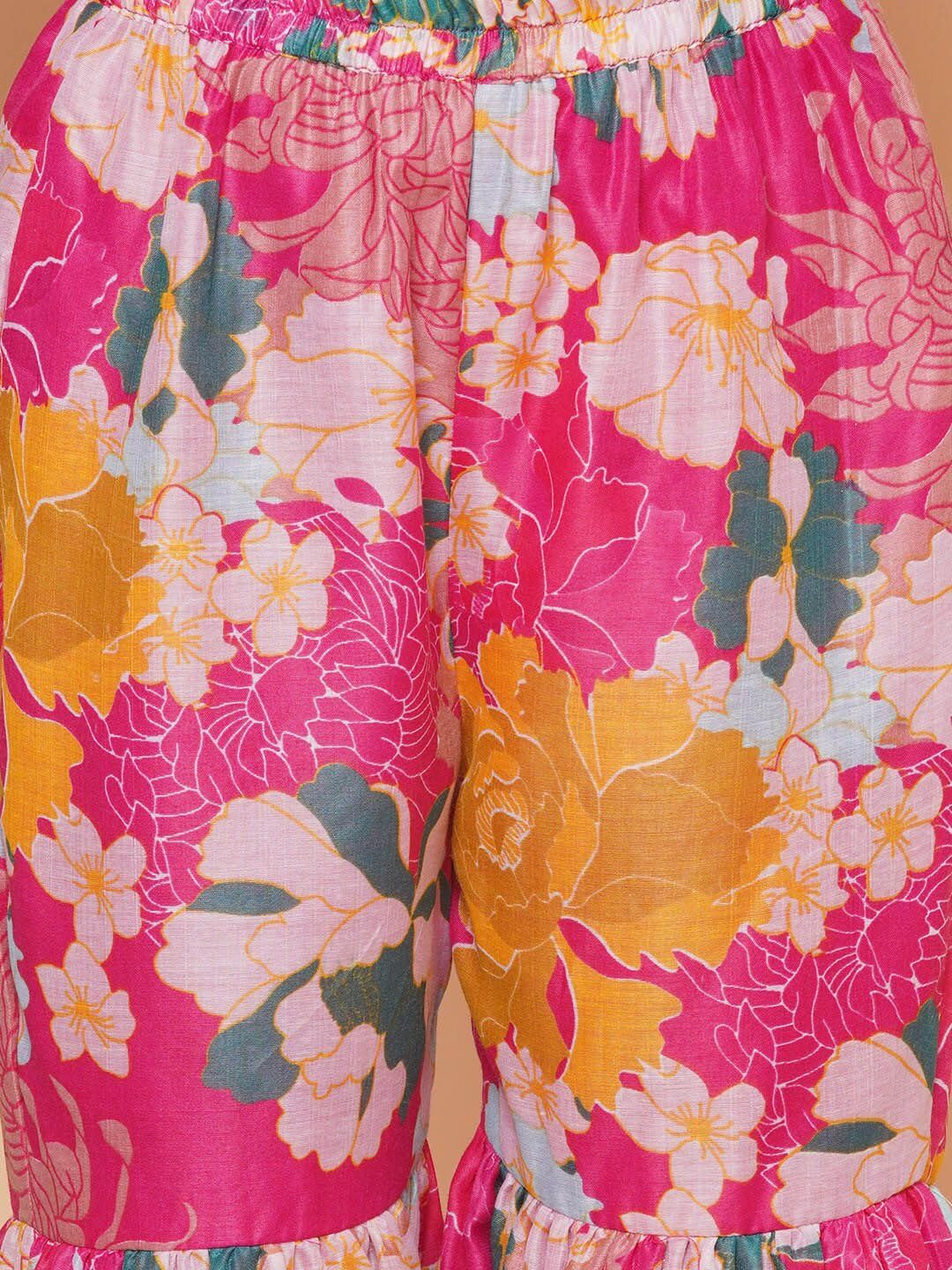 1 Breathable Rayon 2 Flattering Fit Charming Naixa Girls Floral Sharara Dress for a Graceful Look!